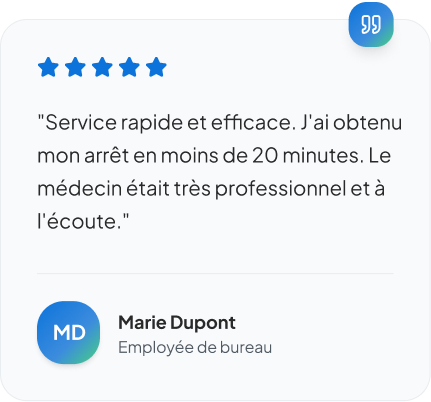 Rejoignez les milliers de patients qui ont déjà fait confiance à Arrêt Médical pour leurs consultations en ligne.